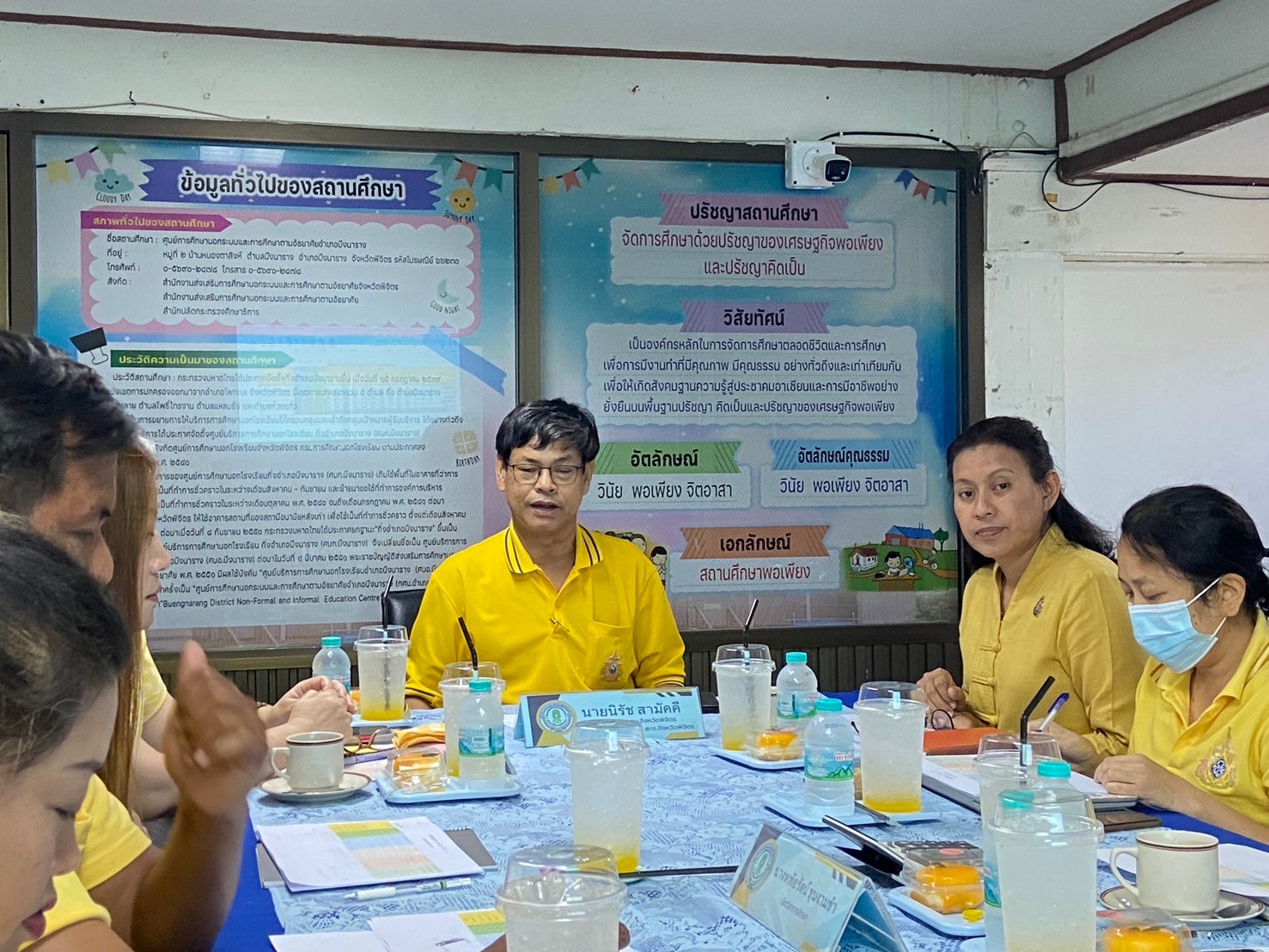 ประเมินผลการปฏิบัติงานบุคคลภายนอก ตำแหน่งบรรณารักษ์ และครูผู้สอนคนพิการ ณ ห้องประชุมศูนย์ส่งเสริมการเรียนรู้ระดับอำเภอบึงนาราง
